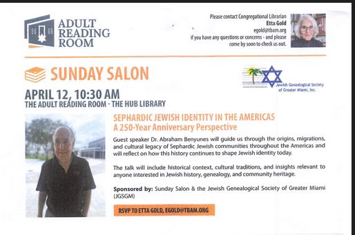 Sunday Salon & The Jewish Genealogical Society of Greater Miami (JGSGM) proudly present